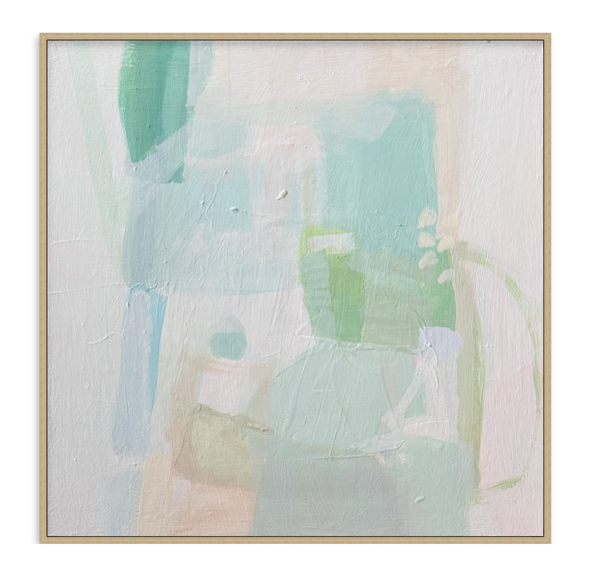 Original mixed media painting on gallery wrapped cotton canvas by Susie Bettenhausen. Sides painted white. Painting sold unframed - framed photos are for reference only. 14" x 14" x 1.75". Available through Palm Beach Artist Collective.